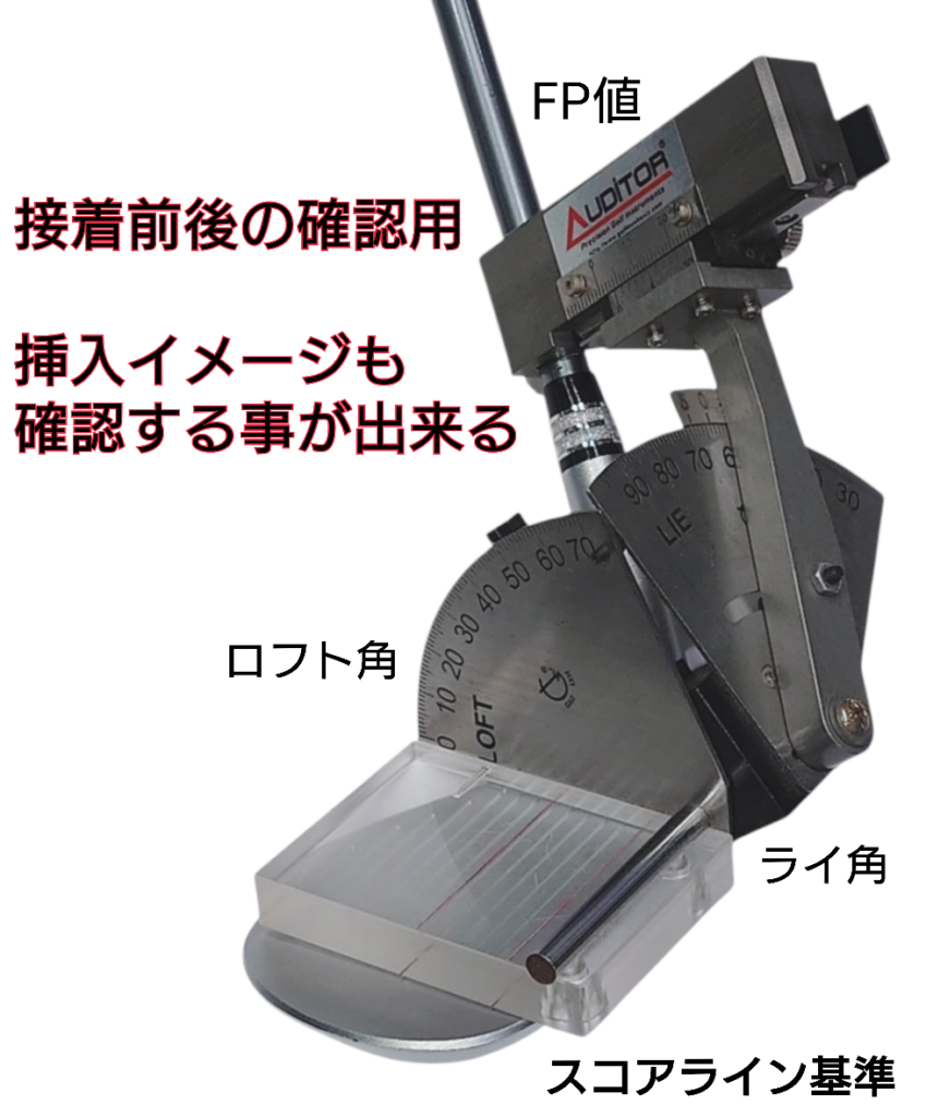 カット前にセンター挿入されたシャフトに対してヘッドのロフト・ライ角がカタログ値になっているかの確認をします。