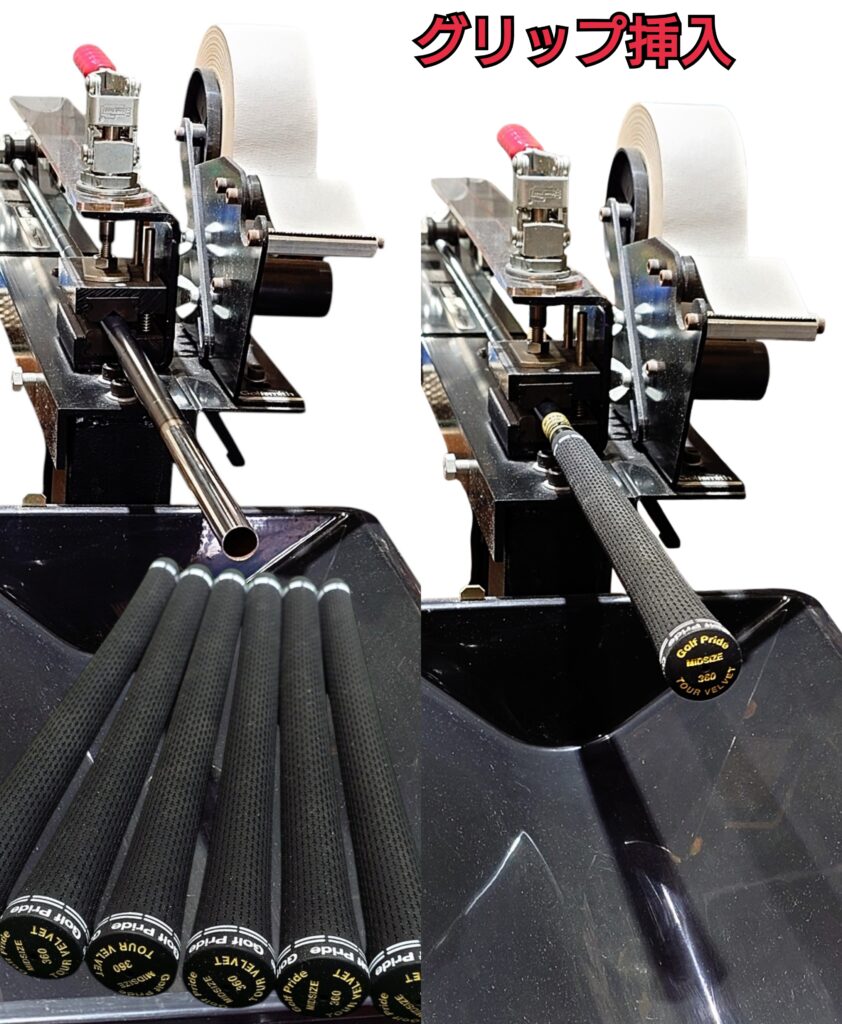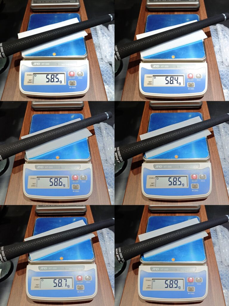 ヘッド、シャフトの重量公差を揃えても、グリップ重量がバラバラでは全て台無しになってしまいますので、グリップも同様に公差の少ない物を選定して置きます。(今回はミッドサイズ使用の為、やや重めのグリップになります)